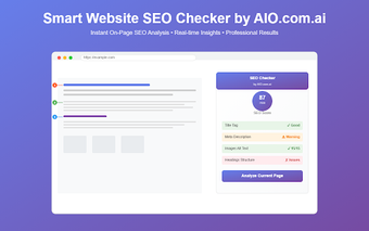 مدقق تحسين محركات البحث الذكي بواسطة AIO.com.ai هو تطبيق مجاني لـ Chrome، ينتمي إلى فئة 'الإضافات والأدوات'.حول أداة فحص تحسين محركات البحث للمواقع الذكية من AIO.com.ai لـ Chrome
